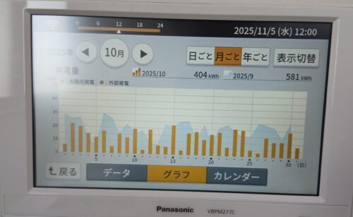 10月は晴れない日も多く自給率も100%を切ってきましたね^^;