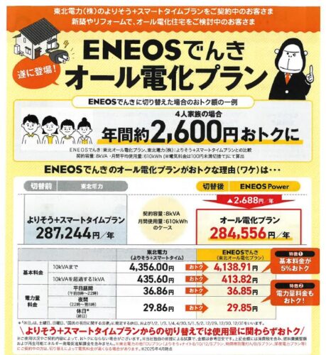 ENEOSでんき 東北オール電化プランのご紹介(^^)/