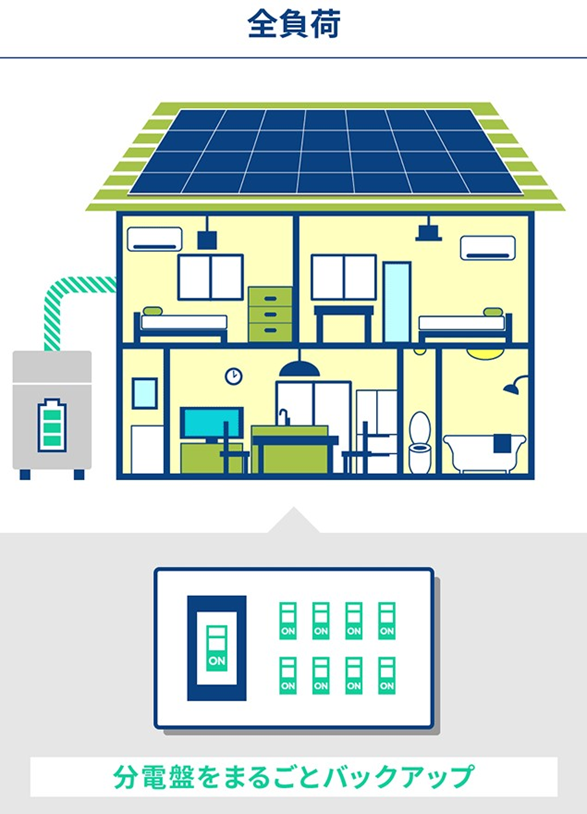全負荷とは、停電時に住宅全体へ電気を供給する方式です。