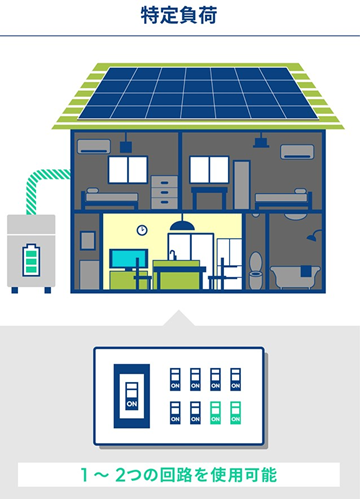 特定負荷とは、停電時にあらかじめ指定した回路のみへ電気を供給する方式です。